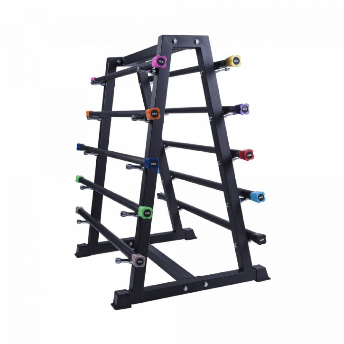 ✔ Stevig halterstang opbergrek ✔ Staal ✔ Maximaal belastbaar tot 400 kg ✔ 10 Halterstangen ✔ Inclusief alle gewichten stangen ✔ Belastbaarheid per plank 70 kg. Het stevige rek is geschikt om (Aerobic) halterstangen in op te bergen. De belastbaarheid per plank is maar liefst 70 kg.