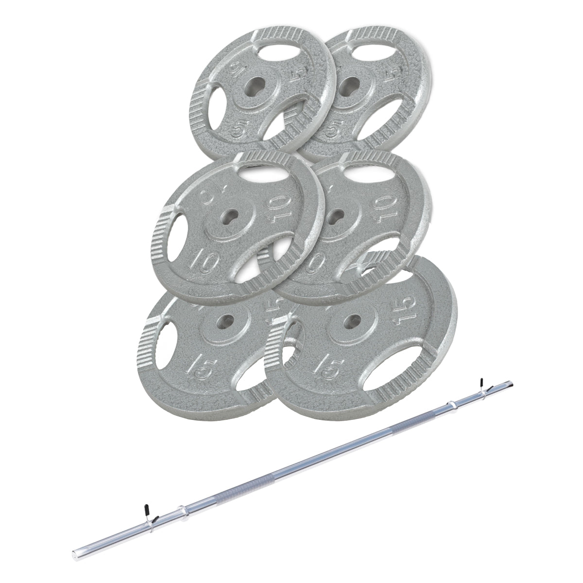 ✔ Gietijzer ✔ Handige grijpopeningen ✔ Full body workout ✔ 70 kg ✔ Lange halterstang, ✔ Professionele kwaliteit. Deze Gietijzer Gripper set van professionele kwaliteit bestaat uit een lange halterstang 170 cm, twee veersluitingen en handige gripper gewichtschijven. Een echte topset waarmee je letterlijk je volledige lichaam kan trainen. Ga je voor het allersterkste materiaal, dat ook nog eens comfortabel is in het gebruik en ben je op zoek naar een complete set? Dan is deze set van 70 kg wat voor jou! De lange halterstang is geschikt voor de 'grote drie': bankdrukken, deadlifts en squats. Deze drie oefeningen vormen de basis van traditionele krachttraining. Aangevuld met optrekoefeningen (pull ups en chin ups) en buikspieroefeningen (sit ups, crunches) zijn deze oefeningen in principe ruim voldoende om kracht op te bouwen. Deze set is geschikt voor gewichten met een diameter van 30/31 mm. Deze cast iron gripper set (met handige grijpopeningen), met een totaalgewicht van 70 kg, is een sierraad voor elke home gym. Schaf je deze set aan, dan ben je in één keer helemaal klaar!