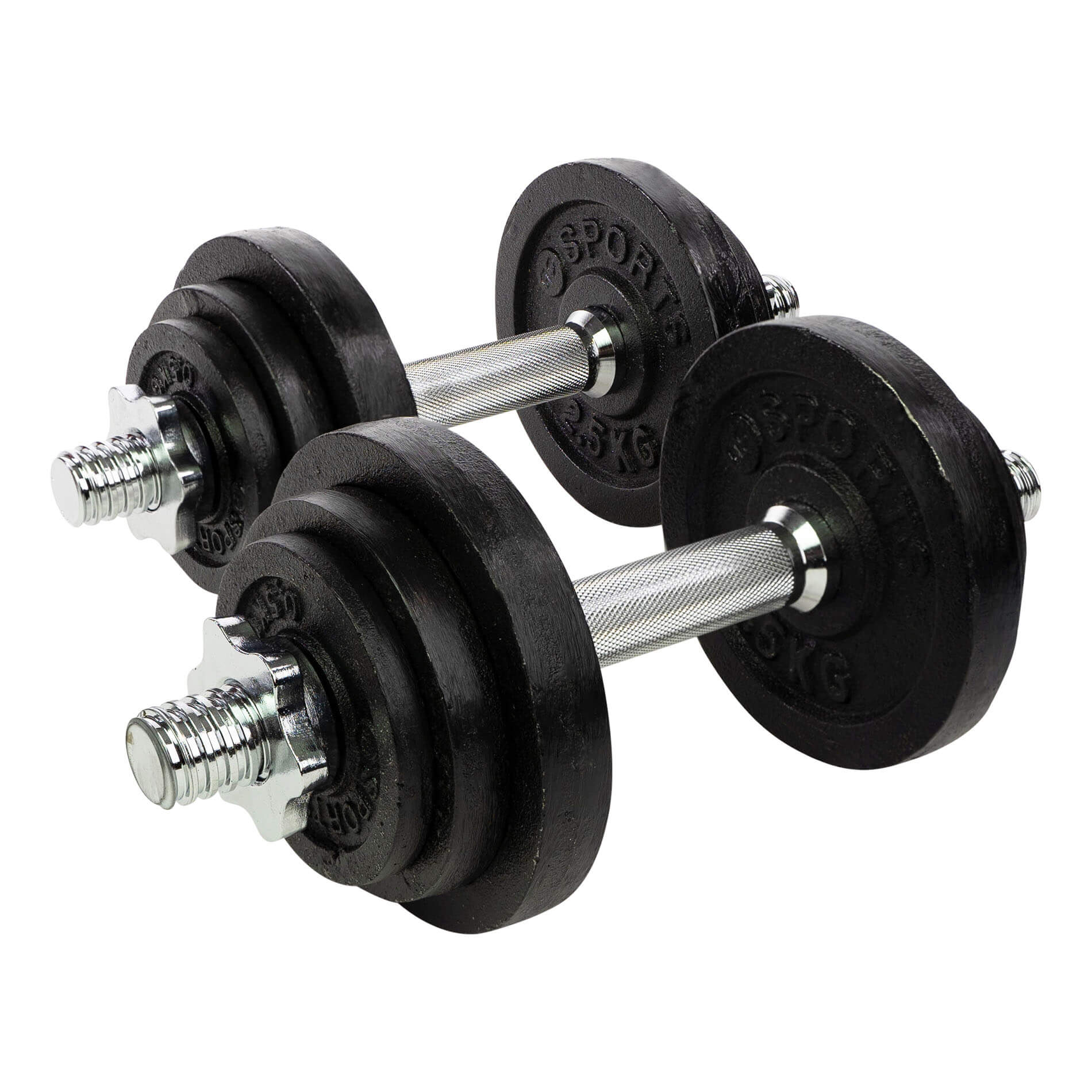 De Dumbellset RS Sports 2x 10kg is ideaal voor een gevarieerde training. Omdat je kunt trainen met een gewicht van 2 tot 20 kg bepaal je zelf de intensiteit van je training, ook zorgt het ervoor dat je al je spiergroepen met een aangepast gewicht kunt trainen. Daarnaast biedt de Dumbellset RS Sports 2x 10 kg de mogelijkheid om je training langzaam op te bouwen. Dit maakt deze set geschikt voor zowel de beginnende, als de gevorderde trainer.Voordelen RS Sports Dumbellset 2x 10kg✔ Ideaal voor een gevarieerde training✔ Geschikt voor zowel de beginnende, als de gevorderde trainer✔ Gemaakt van een hoge kwaliteit gietijzer✔ Voorzien van een prettige grip✔ Handzaam en makkelijk te verplaatsenDe set is gemaakt van een hoge kwaliteit gietijzer, dit is erg belangrijk voor de duurzaamheid van het product. De halterset wordt geleverd met een verchroomde dumbellstang van 36 cm. Deze is voorzien van een prettige grip, wat resulteert in een fijne uitvoering van de oefeningen.De dumbellset bestaat uit:2 x verchroomde dumbellstang (1,8 kg)4 x schroefsluiter 0,22 kg4 x 0,5 kg4 x 1,25 kg4 x 2,5 kgDe halterschijven hebben een diameter van 30 mm.De totale dumbellset met schijven, stang en sluiters weegt 20 kg.Training dumbellsHet grote voordeel aan dumbells is dat je al je spieren apart aan kunt pakken, hierdoor is bijna iedere spier perfect te trainen. Dumbells zijn handzaam en makkelijk te verplaatsen, daarom staan ze garant voor de perfecte workout voor thuis. Er bestaan talloze oefeningen die je staand of zittend kunt uitvoeren. Uiteraard kun je er ook voor kiezen om dit op een halterbank of fitnessmat te doen. Symmetrische trainingen zorgen voor een perfecte balans tijdens de uitvoering van de oefeningen, over het algemeen wordt er dus ook gekozen voor oefeningen met 2 dumbellsets.BeginnersHet kiezen van het juiste gewicht dumbells is van groot belang voor het resultaat van je trainingen en de minste kans op blessures. Omdat deze set bestaat uit verschillende schijven en je hiermee het gewicht van je training kunt bepalen van 2 tot 20 kg, is deze set zeer geschikt voor zowel de beginner als de meer gevorderde trainer.Voor vrouwen raden we aan om te beginnen met 2 kg per dumbell, mannen kunnen beginnen met 2-5 kg.Overzicht specificaties• Materiaal: Gietijzer• Inhoud: • Kleur: Zwart• SKU: RSCB0011• Merk: RS Sports• Garantie: 1 jaar