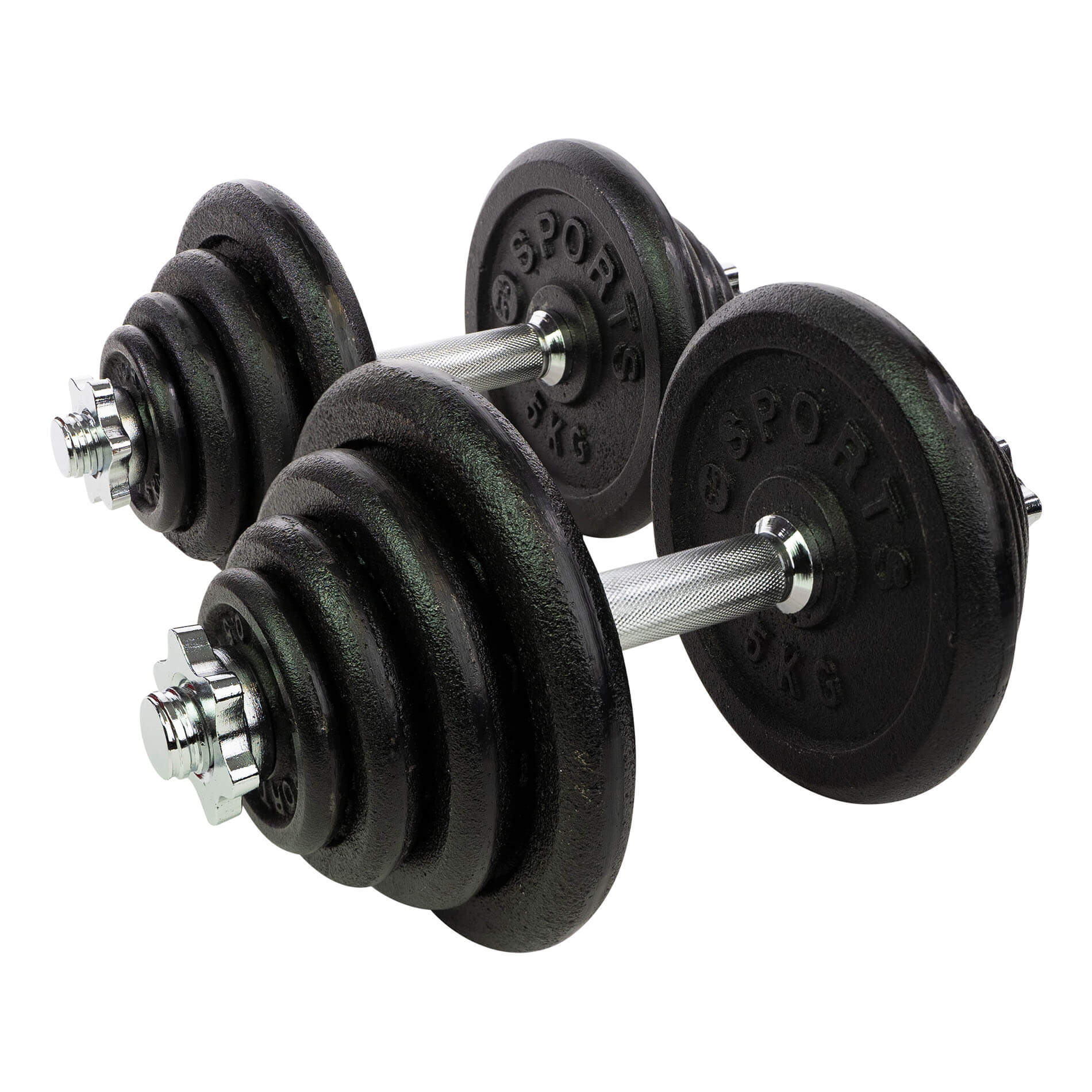 De Dumbellset RS Sports 2x 20 kg is ideaal voor een gevarieerde training. Omdat je kunt trainen met een gewicht van 2 tot 40 kg bepaal je zelf de intensiteit van je training, ook zorgt het ervoor dat je al je spiergroepen met een aangepast gewicht kunt trainen. Daarnaast biedt de RS Sports Dumbellset 2x 20 kg de mogelijkheid om je training langzaam op te bouwen. Dit maakt deze set geschikt voor zowel de beginnende, als de gevorderde trainer.Voordelen RS Sports Dumbellset 2x 20 kg✔ Ideaal voor een gevarieerde training✔ Geschikt voor zowel de beginnende, als de gevorderde trainer✔ Gemaakt van een hoge kwaliteit gietijzer✔ Voorzien van een prettige grip✔ Handzaam en makkelijk te verplaatsenDe set is gemaakt van een hoge kwaliteit gietijzer, dit is erg belangrijk voor de duurzaamheid van het product. De halterset wordt geleverd met een verchroomde dumbellstang van 36 cm. Deze is voorzien van een prettige grip, wat resulteert in een fijne uitvoering van de oefeningen.De dumbellset bestaat uit:2 x verchroomde dumbellstang (1,8 kg)4 x schroefsluiter 0,22 kg4 x 0,5 kg2 x 1,25 kg4 x 2,5 kg4 x 5,0 kgDe halterschijven hebben een diameter van 30 mm.De totale dumbellset met schijven, stang en sluiters weegt 40 kg.Training dumbellsHet grote voordeel aan dumbells is dat je al je spieren apart aan kunt pakken, hierdoor is bijna iedere spier perfect te trainen. Dumbells zijn handzaam en makkelijk te verplaatsen, daarom staan ze garant voor de perfecte workout voor thuis. Er bestaan talloze oefeningen die je staand of zittend kunt uitvoeren. Uiteraard kun je er ook voor kiezen om dit op een halterbank of fitnessmat te doen. Symmetrische trainingen zorgen voor een perfecte balans tijdens de uitvoering van de oefeningen, over het algemeen wordt er dus ook gekozen voor oefeningen met 2 dumbellsets.BeginnersHet kiezen van het juiste gewicht dumbells is van groot belang voor het resultaat van je trainingen en de minste kans op blessures. Omdat deze set bestaat uit verschillende schijven en je hiermee het gewicht van je training kunt bepalen van 2 tot 40 kg, is deze set zeer geschikt voor zowel de beginner als de meer gevorderde trainer.Voor vrouwen raden we aan om te beginnen met 2 kg per dumbell, mannen kunnen beginnen met 2-5 kg.Overzicht specificaties• Materiaal: Gietijzer• Inhoud: Dumbell set 2x 20kg• Kleur: Zwart• SKU: RSCB073• Merk: RS Sports• Garantie: 2 jaar