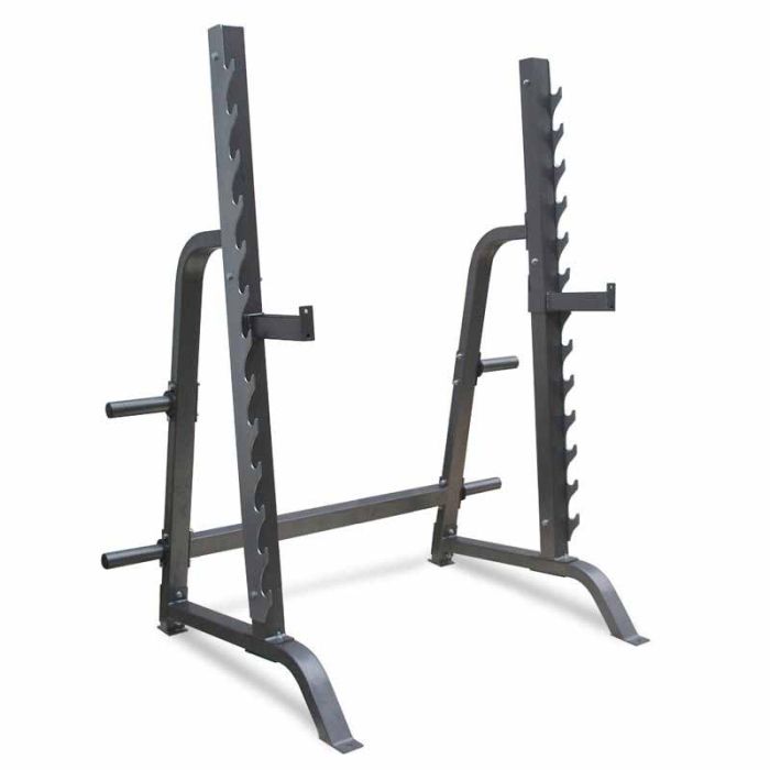Waarom het Titanium Strength 360PR Multifunctionele Support Rack kopen?Want dankzij hem krijg je routines voor schouder – en borstpress, met schuine, vlakke of hellende bank; Squats, lunges, deadlifts … de trainingsmogelijkheden zijn eindeloos met het Multi Press Rack.Hij verdraagt tot 365 kg maximale belasting!Het heeft ook een omgekeerde helling van 7 graden die zich aanpast aan de natuurlijke hefbeweging van het lichaam.De aanvankelijke verhoogde positie en het beveiligingssysteem zijn strategisch geplaatst om je maximale veiligheid te bieden tijdens je trainingen.- Frame van resistent materiaal: 11 gauge staal.- Extra sterke lasnaden op 5 x 7,5 cm staal- Inclusief 4 steunen voor Olympische gewichten.- 14 gunrack posities.- Ideaal voor thuis en commercieel gebruik.- Inclusief extra grote ruimte (43cm diep overal)