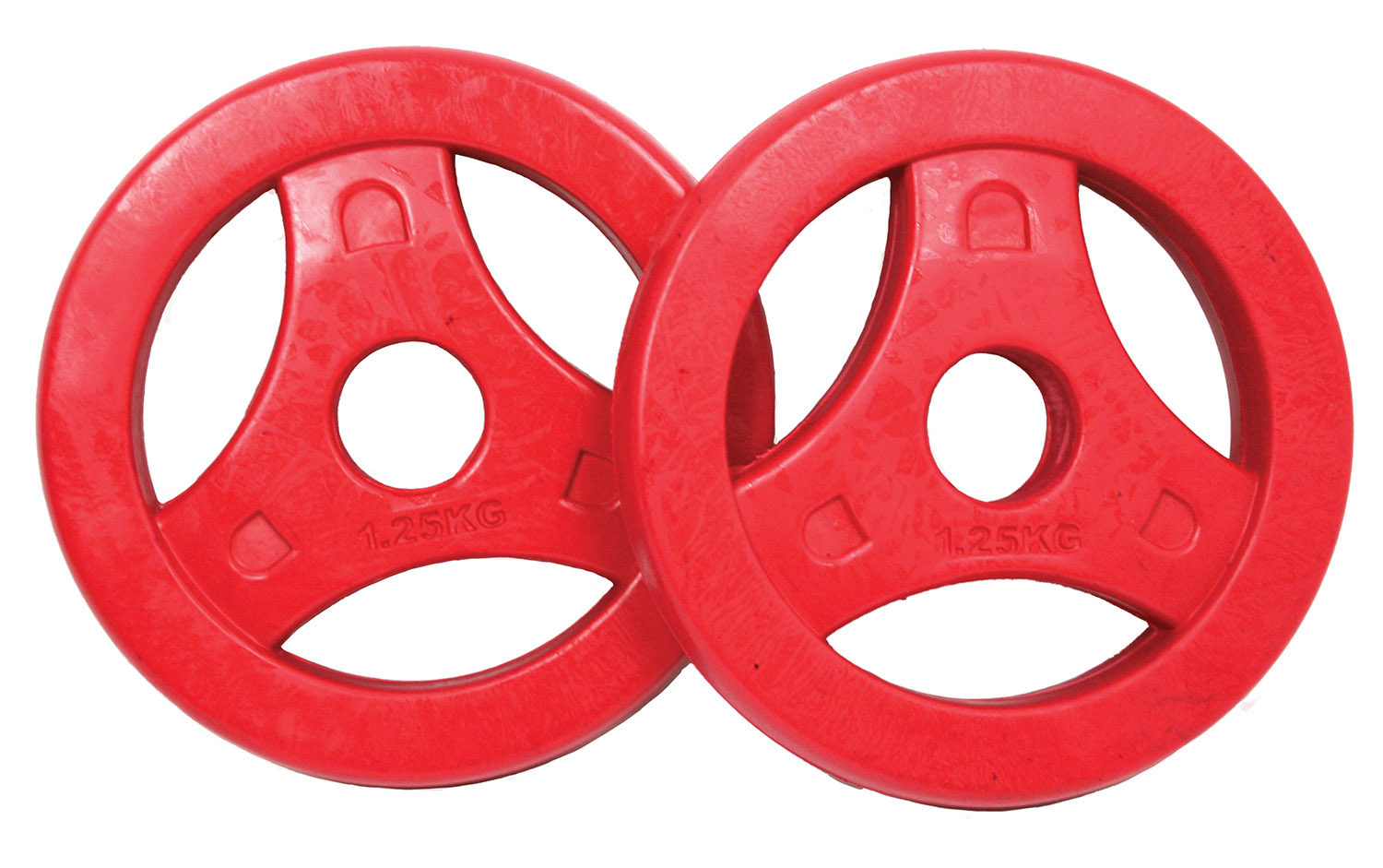 Deze Tunturi Aerobic Halterschijven mogen niet ontbreken in een sportschool of homegym. Combineer met meerdere zwaardere schijven en een goede halter en voilà, een uitstekende halterset om jouw lichaam te versterken. De schijven zijn anders van kleur, waardoor je de halter gewichten makkelijk uit elkaar kunt houden. Dit zijn tri-grip halterschijven die dankzij de handvaten ook los te gebruiken zijn voor allerlei oefeningen. De aerobic halterschijven zijn gemaakt van gietijzer en voorzien van een rubberen beschermlaag. Hierdoor liggen de halter gewichten prettig in de hand en maken ze minder lawaai tijdens een training. De voordelen van de Tunturi Aerobic Halterschijven – Halter gewichten – 2 x 1,25 kg. – Rood✓ Gemakkelijk vast te houden dankzij de tri-grip✓ Opvallende kleur, zodat het gewicht meteen duidelijk is✓ Geschikt voor allerlei oefeningen met en zonder halterstang✓ Voorzien van een rubberen beschermlaag Breid ook jouw set fitnessartikelen uit met deze fijne Tunturi Aerobic Halterschijven! Inclusief gratis Tunturi Training appOp zoek naar hulp, inspiratie of motivatie voor je training? In Tunturi Training vind je duizenden geanimeerde fitnessoefeningen, instructies en workout video’s. Deze helpen je het maximale uit jezelf én je Tunturi-producten te halen. Je kan solo trainen en je eigen trainingsschema’s samenstellen, maar ook groepslessen volgen en gebruik maken van de community. De bibliotheek wordt regelmatig aangevuld zodat er altijd nieuwe uitdagingen en inspiratie in de app te vinden is. Het mooie is: Tunturi Training is 100% gratis te gebruiken en te downloaden in de App Store en Play Store!Over TunturiFeel better every day. Dat is het motto van Tunturi. Onze oorsprong ligt in Finland, waar in 1922 twee broers een fietsenwinkel begonnen. Nu, ruim 100 jaar later, zijn we een Nederlands bedrijf en een wereldwijd merk. We ondersteunen je tijdens jouw reis naar een gezond en fit lichaam, een gebalanceerde geest en een gelukkig leven. Dat doen we met een breed scala aan apparaten voor cardio- en krachttraining, accessoires en ondersteunende apps. Een assortiment dat steeds uitbreidt en verbetert, met kwalitatieve producten en uitstekende garantie. Kom je ergens niet uit of heb je vragen? Dan staat ons serviceteam voor je klaar.Wij vinden dat iedereen recht heeft recht op lekker en gezond sporten, ook kinderen. Daarom doneren wij van iedere aankoop die jij doet een bedrag aan stichting Fitkids. Zo zorgen we er samen voor dat kinderen met een beperking een sport kunnen beoefenen.Overzicht specificaties• Ø 30 mm. • Buitendiameter schijf: 15 cm.• Dikte: 3,2 cm. • Set van 2 aerobic halterschijven van elk 1,25 kg. • Totale gewicht: 2,5 kg. • Kleur: Rood• Materiaal: Gietijzer | Rubberen beschermlaag• Verschillende gewichten (kleuren) leverbaar