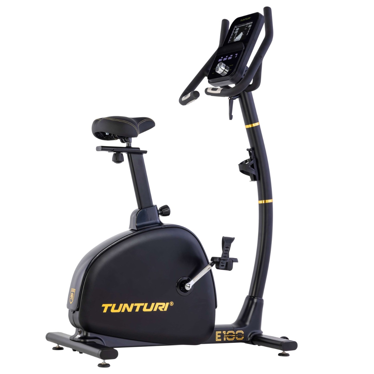 De Tunturi Centuri E100 Hometrainer is een gelimiteerde hometrainer met een stijlvol, luxe design in zwart en goud. Deze veelzijdige trainer is ideaal voor iedereen die houdt van veel afwisseling in de workout, of je nu gaat voor een rustige opbouw of een intensieve training. Met 26 programma’s, 48 weerstandsniveaus en de mogelijkheid AI een persoonlijk trainingsprogramma te laten samenstellen.De voordelen van de Tunturi Centuri E100 Hometrainer✓ Magneetrem met servomotor schakelt eenvoudig tussen de 48 weerstanden.✓ Multigrip+ stuur met anti-slip voor een goede houvast en met geïntegreerde hartslagsensoren.✓ Comfort+ zadel voor de beste zithouding en ultiem comfort tijdens het trainen.✓ Bluetooth AI monitor toon alle trainingsparameters en stelt een persoonlijk trainingsprogramma samen✓ Gelimiteerde Centuri editie met een strak, luxe goud-zwart design.Moeiteloos schakelenDe onderhoudsvrije magneetrem schakelt moeiteloos tussen de 48 verschillende weerstandsniveaus. Daarmee kun je heel geleidelijk de training op- of afbouwen. Bovendien maakt de ruime keuze uit weerstanden de E100 geschikt voor verschillende trainingsdoelen, van revalidatie tot conditieopbouw en een intensieve training.De weerstand van de E100 wordt bepaald door de magnetische aantrekkingskracht die op het vliegwiel wordt uitgeoefend. De servomotor in de trainer zet de magneten in beweging. Met een draai aan de knop op de monitor kies je de weerstand, de motor doet de rest.Alle parameters in één oogopslagOp de Bluetooth AI Monitor zie je in één oogopslag alle trainingsparameters: tijd, afstand, calorieën, snelheid, trainingsweerstand, hartslag, RPM, het trainingsprofiel en het wattage. De monitor kantel je handmatig zodat je altijd een goed zicht hebt op het scherm, in welke positie je op dat moment ook traint.Wil je tijdens het trainen een film of serie kijken, of trainen met een app met video routes? De monitor heeft een tablet houder. Met de tablet in de houder zie je nog steeds de vier belangrijkste parameters op de monitor, aan weerszijden van de tabelt.Train buiten, ook als je binnen bentMet video routes blijft je training leuk en uitdagend. Tunturi Routes is via Bluetooth koppelbaar met de E100. Met de gratis versie heb je altijd toegang tot vijftien video routes, met de betaalde versie maak je gebruik van honderden routes over de hele wereld. Koppel je Zwift aan de hometrainer, dan past de video de snelheid aan op het tempo waarin jij fietst. Dit geeft een extra authentieke trainingservaring. Wil je AI een persoonlijk programma laten samenstellen op basis van je trainingsresultaten? Koppel dan iConsole+ aan de E100.Altijd goed gripHet Multigrip+ stuur kun je vasthouden in de positie die jij fijn vindt. Het stuur is tot op de millimeter traploos verstelbaar, van recreatief (hoog) tot sportief (midden) en race (laag). Daarmee kun je variëren in de trainingshouding en deze aanpassen op het type workout of de video route die je kiest. De hartslagsensoren op het stuur zitten dichtbij, zodat je deze altijd vast kunt houden op een manier die voor jou het meest prettig is. Het Comfort+ stuur heeft een anti-slip coating, zodat je handen niet snel wegglijden, ook niet tijdens een intensieve training.Nog meer voordelen van de E100 Hometrainer✓ Ergometer hometrainer✓ Lage, ruime doorstap✓ Vetmeting en BMI-calculatie✓ Hartslaggestuurd trainen✓ Recovery programma met fitness test✓ Elektronische bediening, geen zware draaiknop✓ Bidonhouder✓ Transportwielen✓ Tablethouder✓ Te verbinden met een analoge en Bluetooth borstband✓ Optioneel uit te breiden met REHA pedalenComfortabel zitten in de juiste positieOf je nu dagelijks op de hometrainer zit of incidenteel, met het Comfort+ zadel behoort zadelpijn tot het verleden. Het ergonomische zadel vangt de beweging van de training op en is extra lang en breed zodat het gewicht beter verdeeld wordt. Bovendien kun je het zadel zowel in de hoogte als de lengte verstellen, bijvoorbeeld als je het stuur verstelt naar een andere positie. Op die manier zit je altijd in de juiste positie en voorkom je spierpijn en blessures.Moeiteloos op- en afstappenDankzij de ruimte tussen de voorste buis en de vliegwielkast van de hometrainer hoef je het been niet over een frame buis of zelfs het zadel te tillen om op- en af te stappen. Je hoeft je been maar een paar centimeter op te tillen. Dat geeft de hometrainer een makkelijke en veilige op- en afstap, en maakt de E100 ook heel geschikt voor revalidatie en voor mensen met mobiliteitsproblemen.Hometrainer in een luxe jasjeIn 1922 openden de gebroeders Harkke een Tunturi fietswinkel in Turku, Finland. In de jaren zestig introduceerde Tunturi als eerste ter wereld de ergometer hometrainer voor het trainen op wattage. In 2022 vierden we ons 100-jarig bestaan. Voor deze mijlpaal is een speciale lijn Centuri limited edition producten ontwikkeld in een fraai goud-zwart jasje. Vertrouwde Tunturi artikelen met een strak, nieuw en gelimiteerd design die niet misstaan tussen de rest van de Tunturi producten.Train altijd uitdagend op je eigen niveauDe E100 heeft 48 weerstandsniveaus waartussen je moeiteloos schakelt met behulp van de magneetrem met servomotor. Met 26 programma’s is de E100 geschikt voor veel verschillende trainingsdoelen. Je kunt trainen met een programma op afstand, op tijd of op calorieën. Ook heeft de trainer een programma voor trainen op wattage en een BMI- en vetpercentage-meting. Daarnaast heeft de trainer 12 voorgeprogrammeerde trainingsprofielen, 4 hartslag gestuurde programma’s, een recovery (fitness test) programma en een handmatige modus. Ook kun je met behulp van de iConsole+ app de AI monitor een persoonlijk trainingsprogramma laten samenstellen.Over TunturiFeel better every day. Dat is het motto van Tunturi. Onze oorsprong ligt in Finland, waar in 1922 twee broers een fietsenwinkel begonnen. Nu, ruim 100 jaar later, zijn we een Nederlands bedrijf en een wereldwijd merk. We ondersteunen je tij