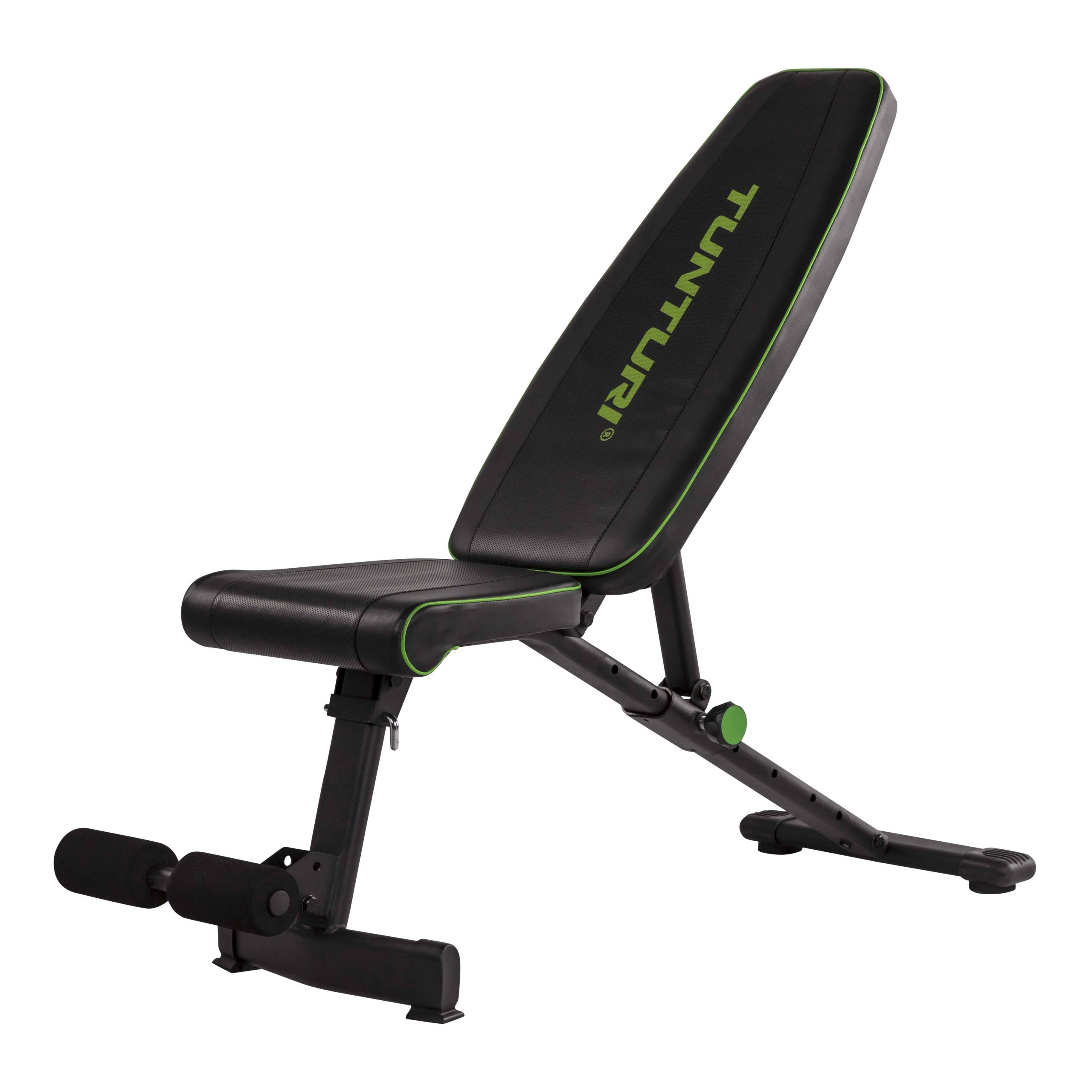 Wil je graag je ganse bovenlichaam trainen? De UB20 Utility Bench van Tunturi is dan de perfecte halterbank: je traint met halters maar met deze slimme bank doe je net zo goed verschillende buikspieroefeningen. De voordelen van de Tunturi UB20 Halterbank✔Verschillende trainingsopties, specifiek voor het bovenlichaam✔Halterbank én buikspierbank✔Stevige, vaste zitting met verstelbare rugleuning✔Instelbare leg roll✔Compact en gemakkelijk opklapbaarSnel en probleemloos instellenDe vaste zitbank geeft de nodige ondersteuning aan het ganse lichaam. De rugsteun stel je in op 7 verschillende standen. Met het handige glide systeem met het quick adjust mechanisme verander je de positie van de rugsteun in een handomdraai. Zo gaat er geen kostbare tijd verloren tussen de verschillende oefeningen door.Deze halterbank heeft een afzonderlijk instelbare roller pad. Tijdens je buikspieroefeningen neem je steeds de juiste houding aan door de roller pad correct te positioneren. Daarnaast heeft de UB20 ook beenrollen met een foam vulling. Zo train je op deze fitnessbank comfortabel en zorgeloos je buikspieren en je benen. De gestikte zitting met extra stevige hoeken garandeert een lange levensduur van je halterbank en voorkomt slijtage op kwetsbare delen. Het frame van robuust staal zorgt voor de nodige stevigheid. De afwerking in een mat zwarte poedercoating geeft je bank een strakke uitstraling. De antislip rubberen vloerbeschermers zorgen dat de ondergrond niet beschadigd wordt.Met deze halterbank bespaar je ruimte. Je maakt de UB20 een heel stuk kleiner met het neerklapmechanisme. Zo past de flat bench onder een bed of in de kast en wordt de bank geen onderdeel van je interieur. Het maximale belastbare gewicht voor de halterbank is 120 kg.Eindelijk heb je die verstelbare en compacte halterbank gevonden. Deze Tunturi UB20 wordt je beste trainingspartner. Bestel snel!Overzicht specificaties• Opklapbaar: afmeting uitgeklapt: L: 118,5 cm. B: 98 cm. H:43,5 cm.• Opklapbaar: afmeting ingeklapt : L: 118,5 cm. B: 43,5 cm. H: 23,5 cm.• Frame: staal• Bekleding beenrollen: foam en vinyl• Antislip rubberen vloerbescherming• Rugsteun instelbaar• Maximaal gebruikersgewicht: 120 kg • Gewicht: 11,5 kg