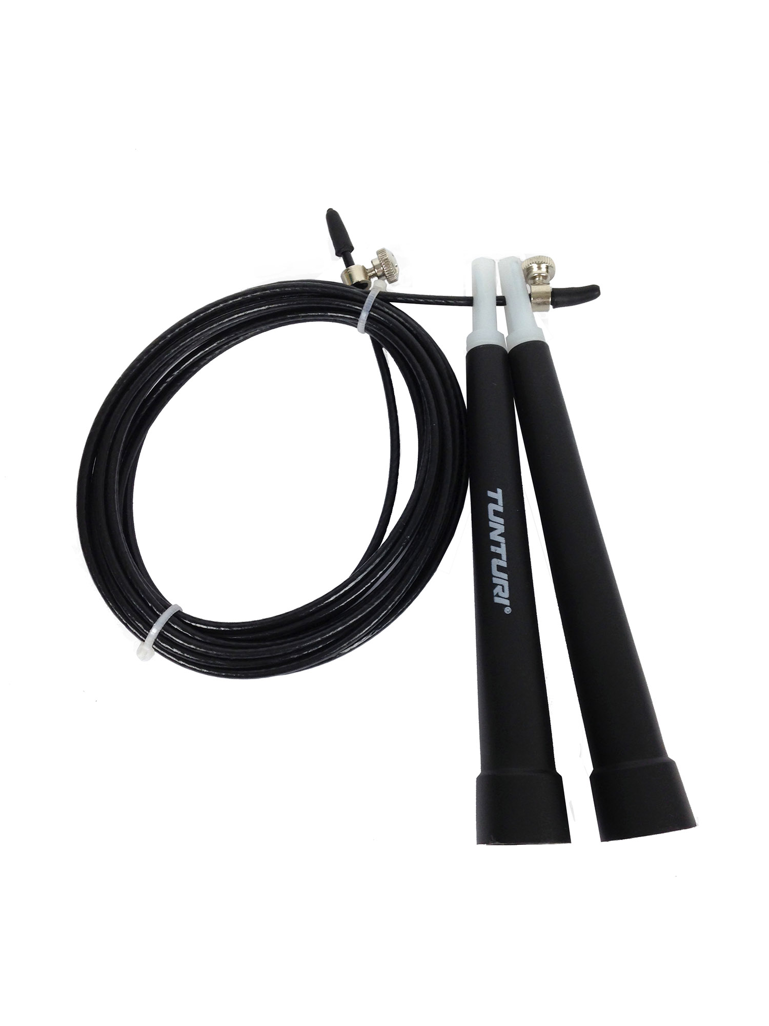 Het Tunturi verstelbare speed rope bestaat uit een dun metaaldraad omwikkelt met kunststof. Je kunt de lengte naar wens aanpassen. De grepen bestaan uit langwerpig kunststof materiaal.