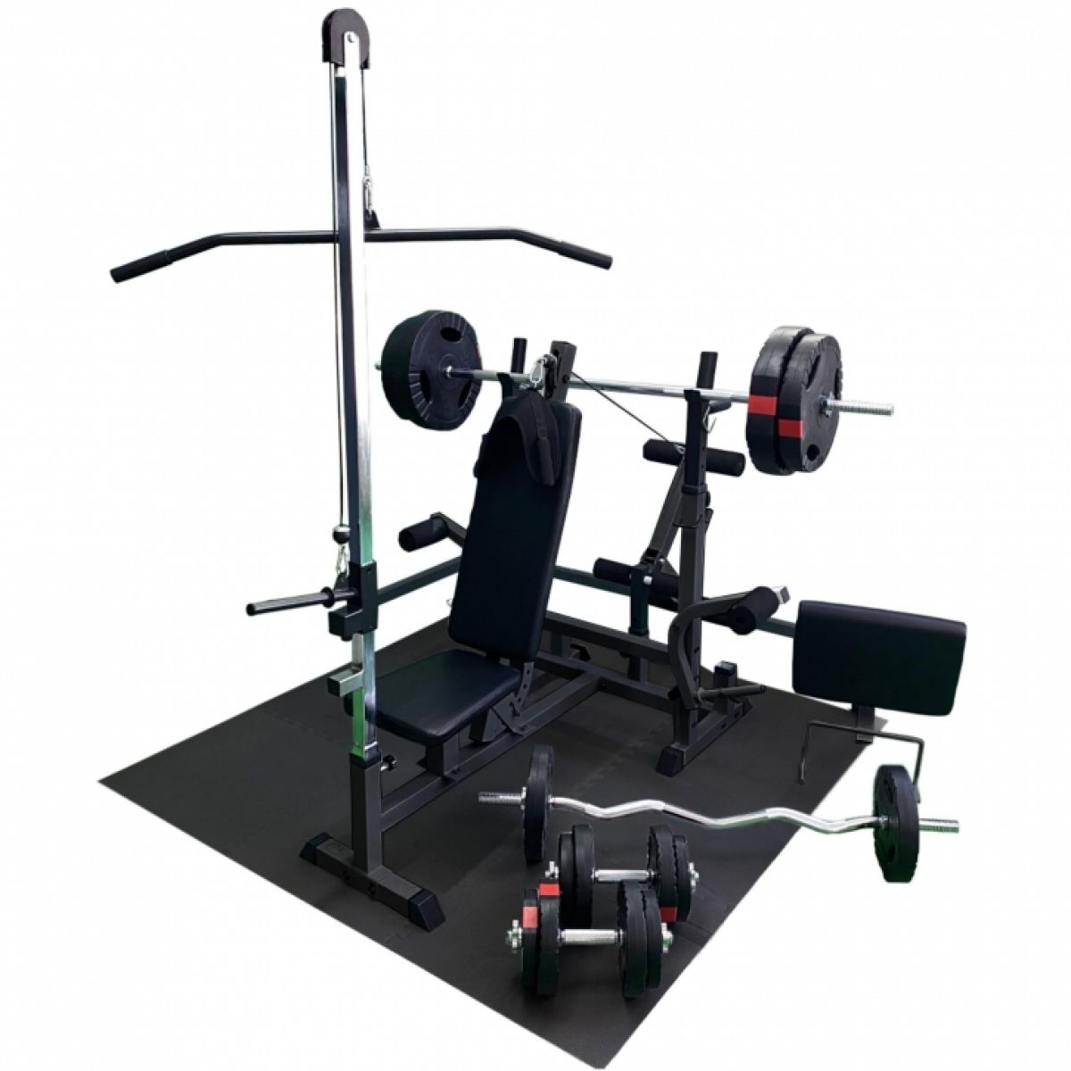 ✔ Lange halterstang ✔ Curlstang ✔ 2 korte halterstangen ✔ Universele halterbank ✔ Lat-pulley attachment ✔ 14 halterschijven met een totaalgewicht van 75 kg. Om het maximale uit jezelf te halen kun je het beste kiezen voor onze bestseller. De universele halterbank complete set. In deze set zitten o.a. 6 vloermatten (met eindstukken). Deze gaan ervoor zorgen dat jouw vloer goed beschermd wordt tegen eventuele krassen en deuken. Daarnaast wordt er uiteraard een universele halterbank meegeleverd. Om nog meer te kunnen variëren met de halterbank wordt er ook nog eens een Lat Pulley attachment meegeleverd en natuurlijk de halterset 100 kg gripper kunststof.