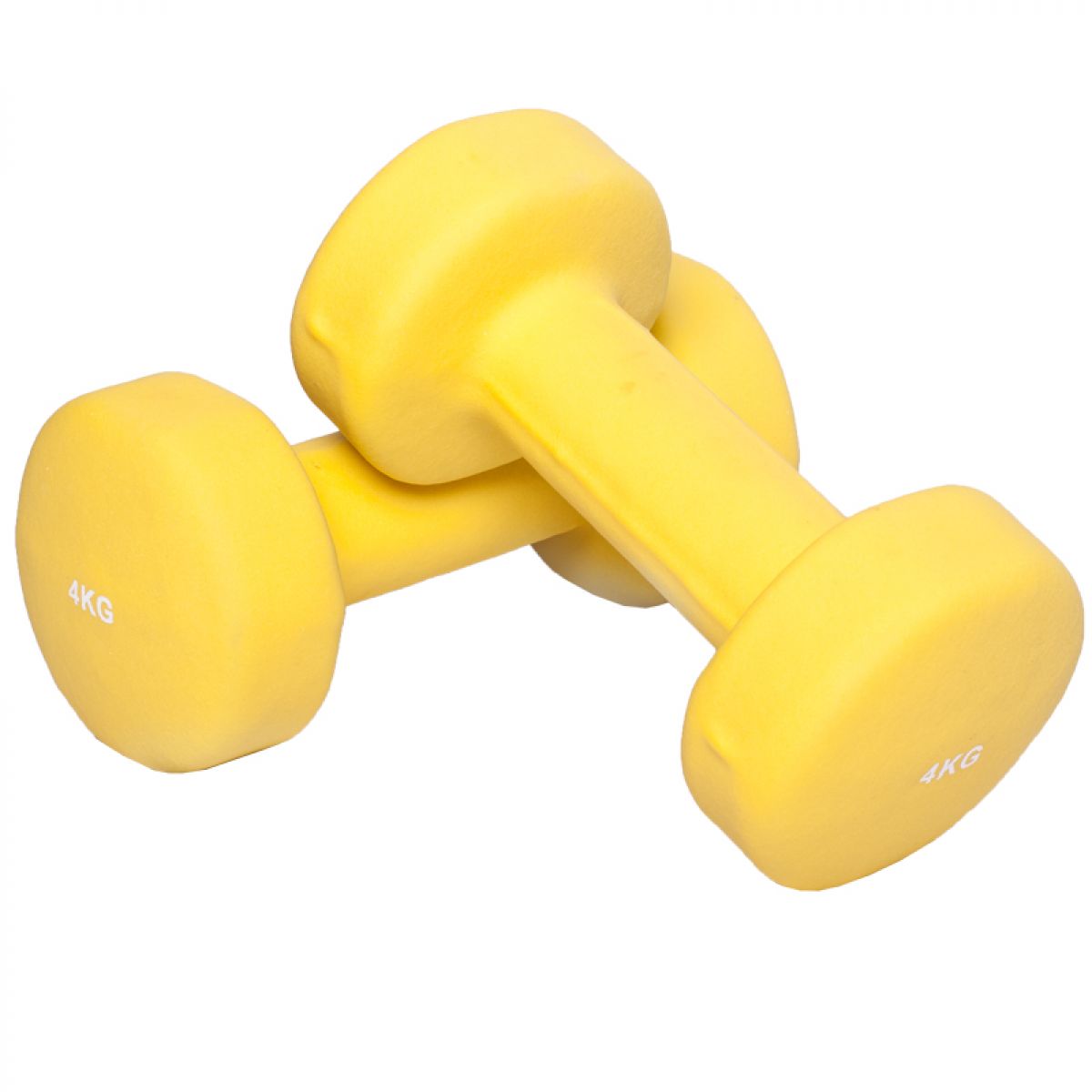 De halterset bestaat uit twee halters met elk een gewicht van 4 kg. Het gietijzeren materiaal is bekleed met een duurzame vinylcoating die het gewicht beschermt tegen beschadigingen en slijtage. De afgeronde randen zorgen voor een comfortabele grip en voorkomen dat de halters uit je handen glijden tijdens het sporten.