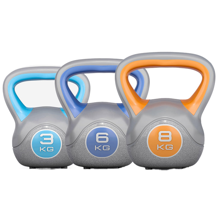 Voordeelset Kettlebells 3, 6 en 8 kg Kunststof Trendy in detail: